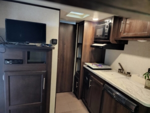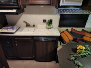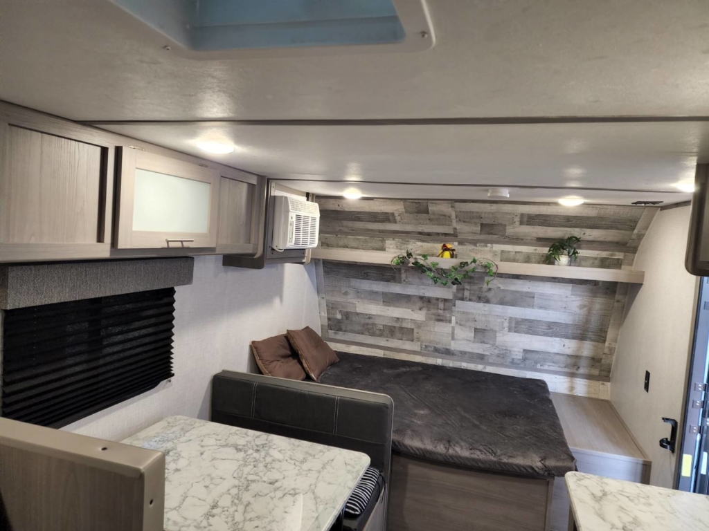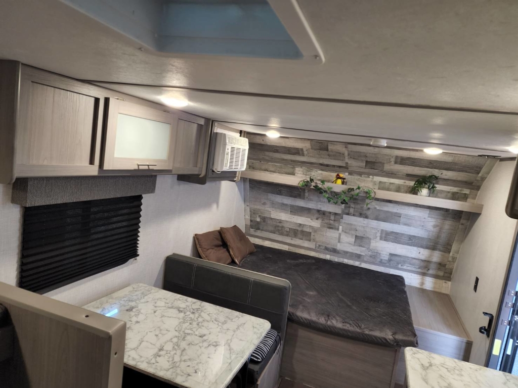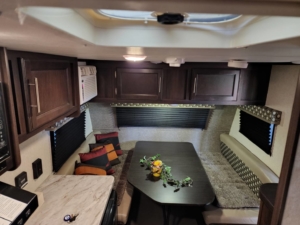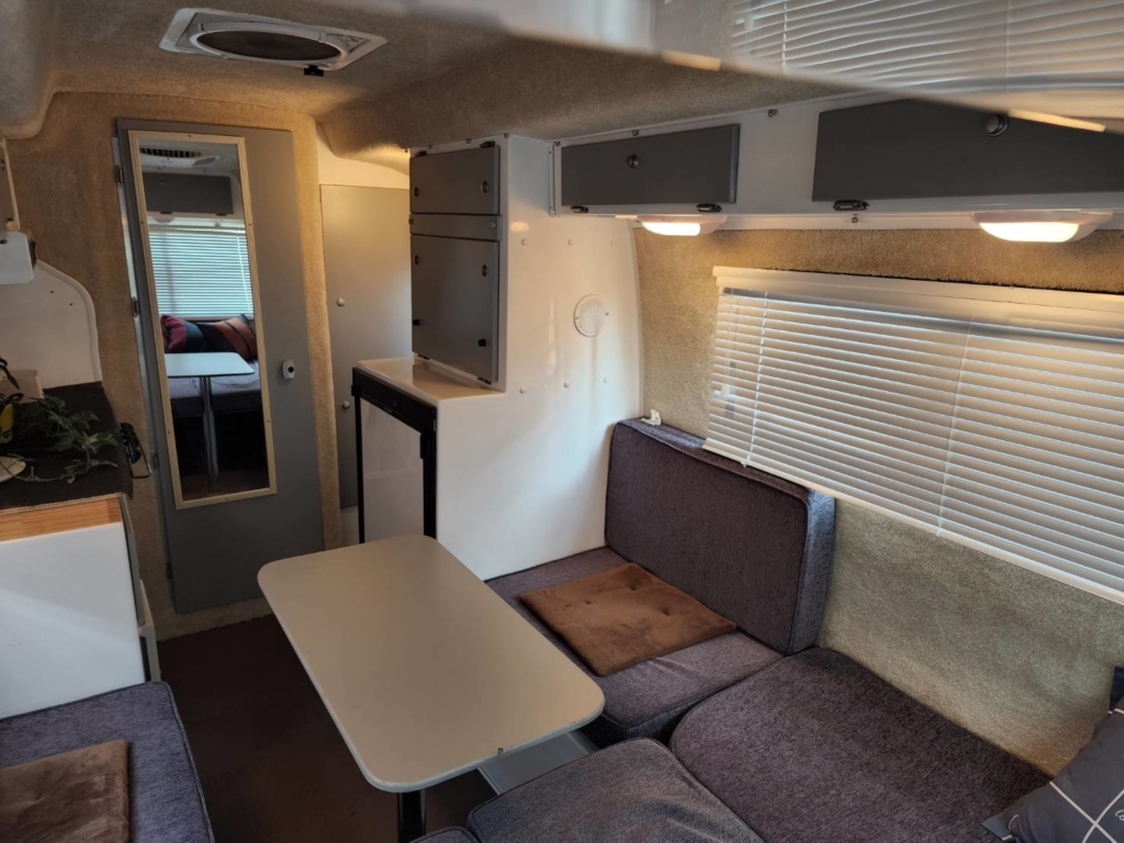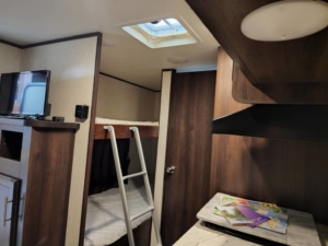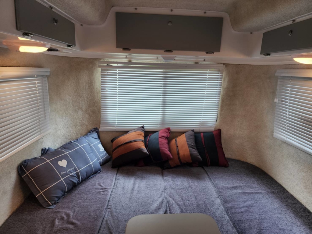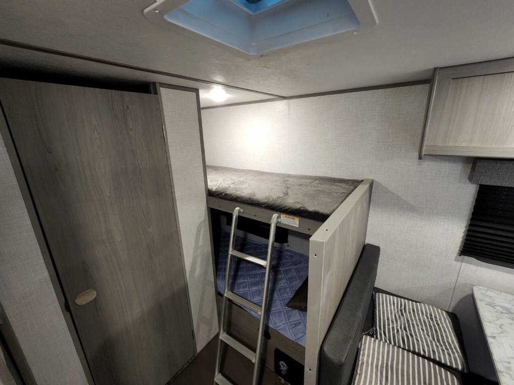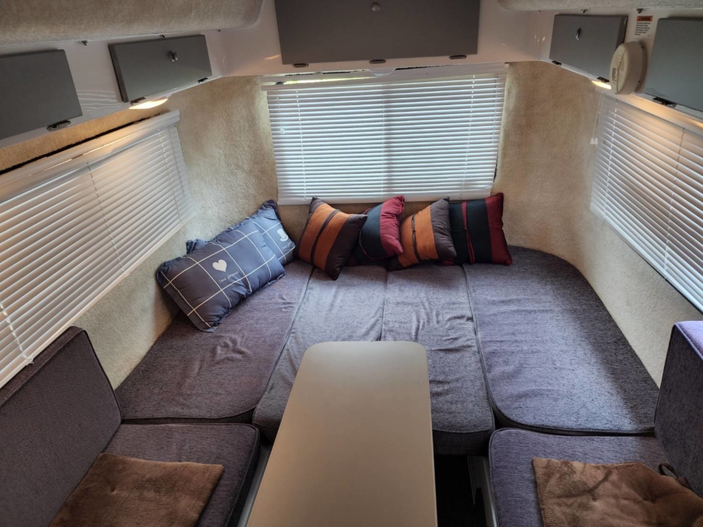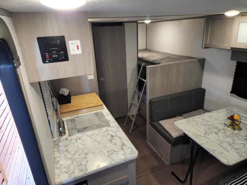 フロント側に4名着座可能なダイニングを備えリヤにはお子様が喜ぶ2段ベットを配置されております